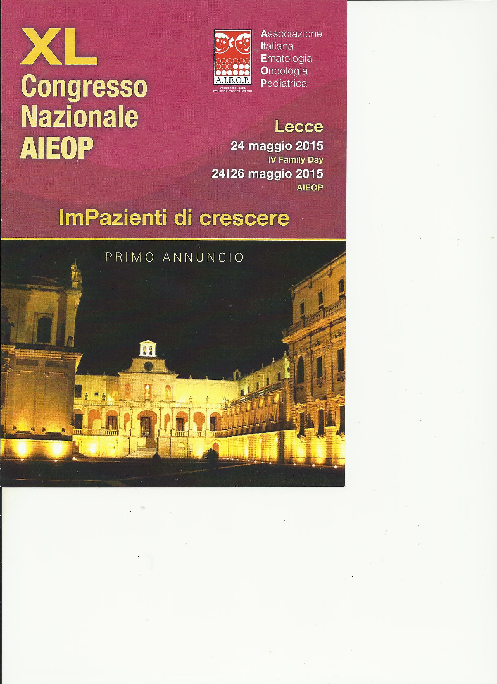 A LECCE IL XL CONGRESSO NAZIONALE AIEOP E IL IV FAMILY DAY
